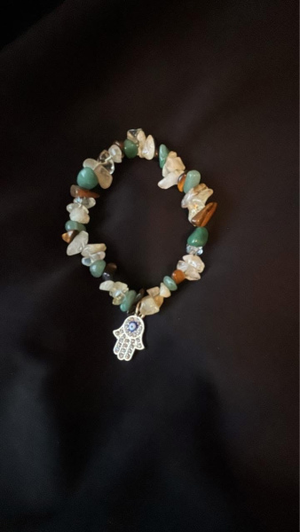 Citrine, green aventurine and tigers eye with a hamsa charm. All 4 things known for bringing abundance and prosperity to your life